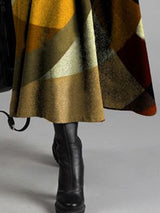 Product:Black Elegant Colorblock Geometric Print Long Sleeve Dress