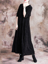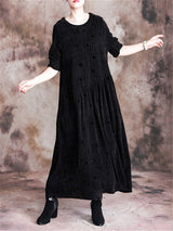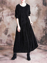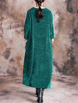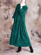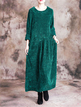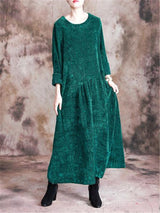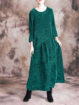 Solid Color Round Neck Stitching Gold Velvet Maxi Dresses