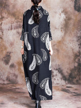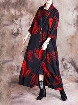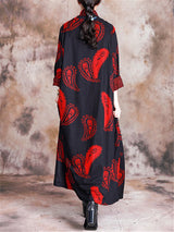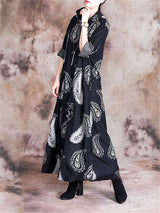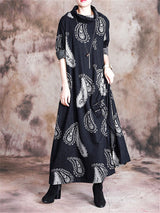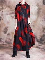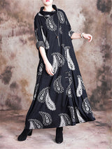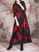Stand Collar Printed Loose Maxi Dresses
