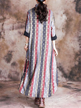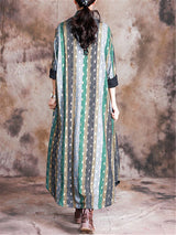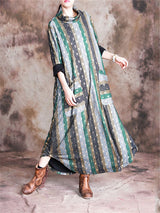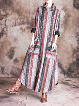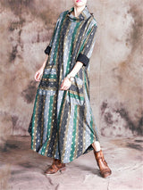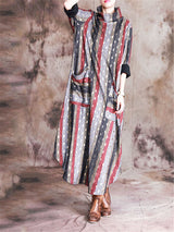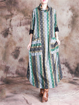 Stand Collar Print Pocket Loose Maxi Dresses