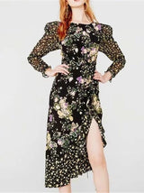 Vintage Printed Hem Irregular Long Sleeve Dress