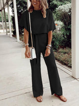 Loose Casual Lace Up Jumpsuit Short Sleeve