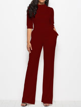 Sexy Solid Color Five-point Sleeve Stand Collar Wide Leg Jumpsuit