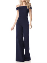 Sexy Word Shoulder Waist Pure Color Jumpsuit
