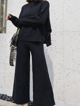 Casual Draped Knit Wide Leg Pants Set Two Piece Set