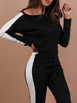 Casual Long Sleeve Color Matching Sports Casual Slim Two-piece Set