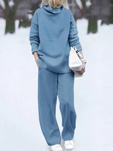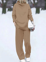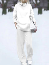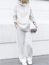 Casual Wild Pure Color Turtleneck Two-Piece Set