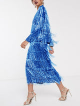 Fashion Sequined Long Sleeve Top Skirt Tassel Set