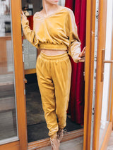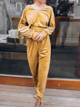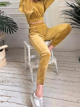 Long-sleeved Open-neck V-neck Glossy Slim Two-piece Suit