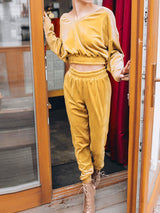 Product: Long-sleeved Open-neck V-neck Glossy Slim Two-piece Suit