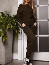 Loose Casual Long Sleeve Beaded Pullover Pants Knit Set