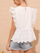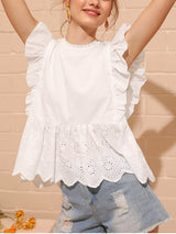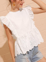 Holiday Style Lace Neckline Stitching Ruffled Sleeves Blouse