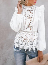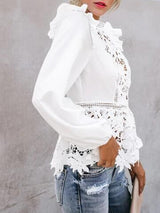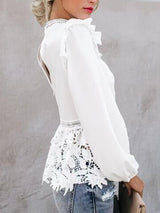 Lace Stitching Sexy Ruffled Long-sleeved Blouse