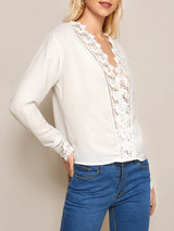 Lace V-neck Chest Cuff Lace Chiffon Blouse