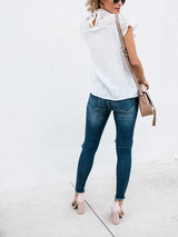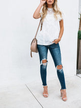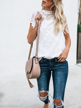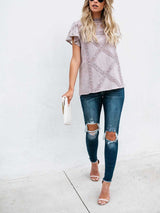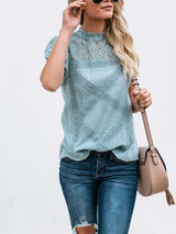 Short-sleeved Geometric Stitching Lace Top