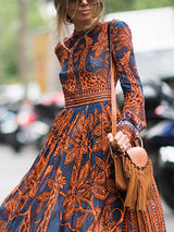 Bohemian Fashion Long Sleeve Round Neck Print Dress