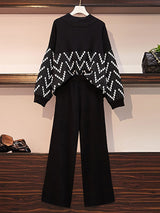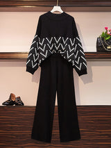 Casual Loose-knit Wide-leg Pants Two-piece Suit