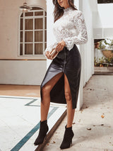 Sexy Perspective Long Sleeve Stand Collar Lace Blouse