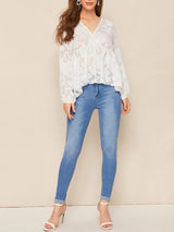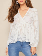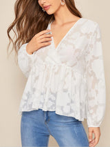 Product: V-neck Cross Ruffled Long-sleeved Blouse